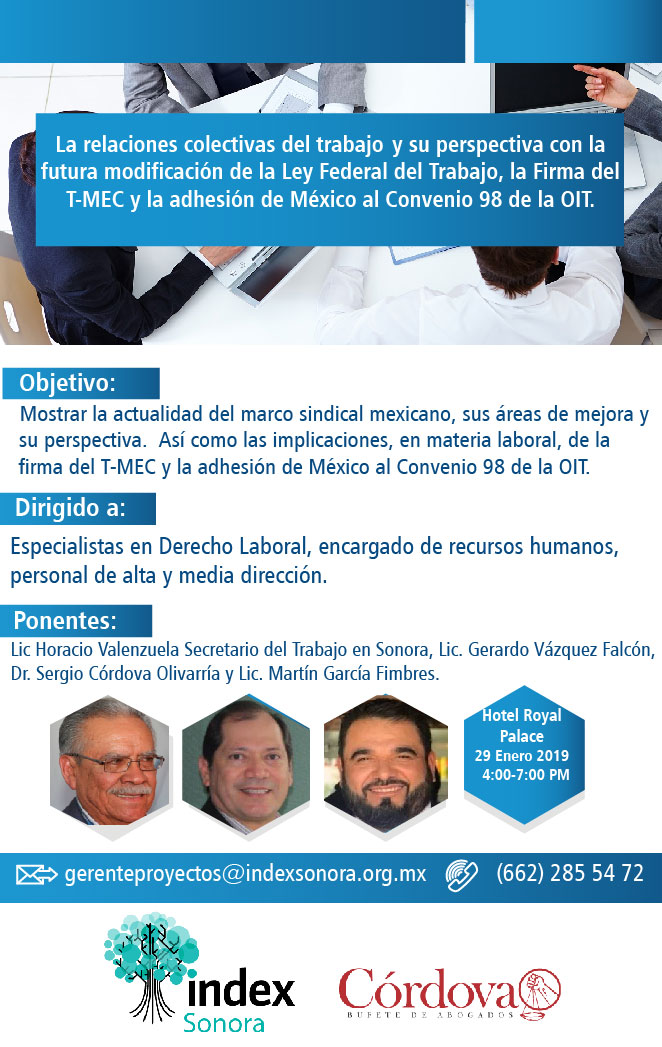 “ Las relaciones colectivas del trabajo y su perspectiva con la futura modificación dela Ley Federal del Trabajo, la firma del T-MEC y la adhesión de México al Convenio 98 de la OIT”