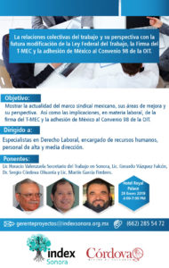 Foro “ Las relaciones colectivas del trabajo y su perspectiva con la futura modificación dela Ley Federal del Trabajo, la firma del T-MEC y la adhesión de México al Convenio 98 de la OIT” Fecha: 29 de Enero de 2019...